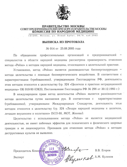 В России Рэйки получила официальное признание на уровне города Москвы (2005 г.):
