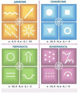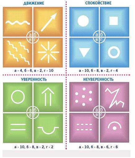 Внимательно рассмотрите эти 16 символов. И в каждой группе выберите по одному, который больше понравился с первого взгляда и который больше характеризует вас. Подсчитайте количество баллов, которое у вас получилось.
